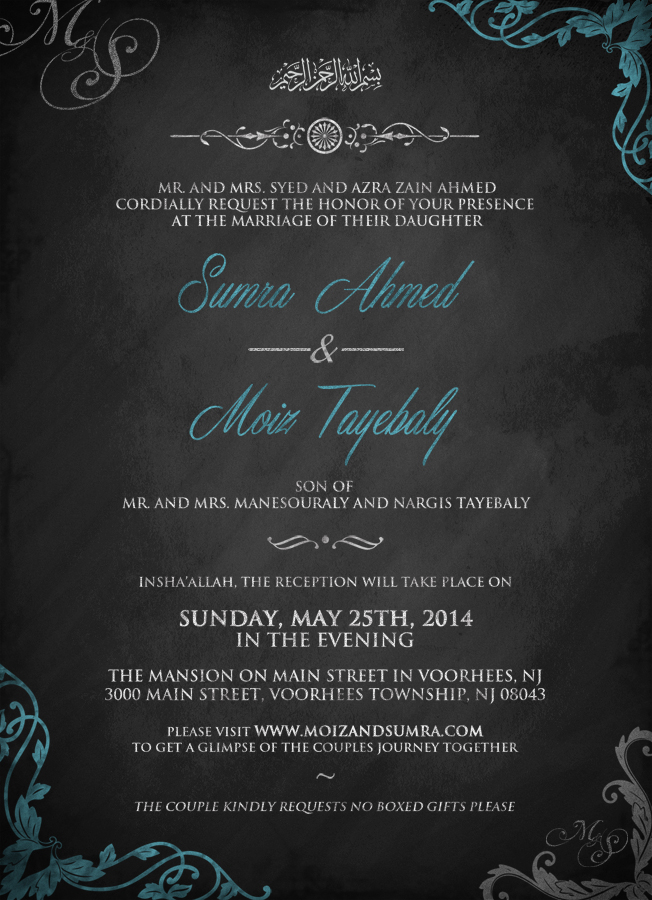 Please use our hashtag #moizandsumra for the wedding on all Facebook / Instagram / Twitter posts so we may view them later. Thanks! =)